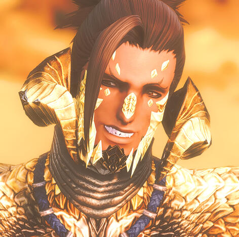 Born to a Raen mother, and Xaela father, Kodran's appearance takes that of a mixed version of both sides of AuRa heritage. Kodran himself, however, would never get to know his true heritage. His mother had left her old life behind to travel to the West, and when Kodran was but a young child, they were attacked in Thanalan by a band of tempered Amalj'aa. Kodran himself only survived when his mother ordered him to hide underneath their cart. He was later found by a passing patrol belonging to the Brotherhood of Ash. Much like the Miqo'te, Loonh Gah, Kodran was adopted and raised by the Brotherhood; he considers them family, and Loonh Gah his dear sister. Unlike her, however, Kodran is not against making trips to Ul'dah to meet new people; and while he has a most fearsome appearance, Kodran is a good-natured, albeit hot-tempered man who just doesn't get most social cues. Truly, he's just an idiot.